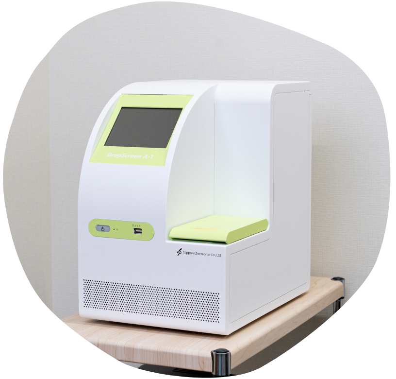 また、指先などからの微量採血によってアレルギーの主要な原因物質41項目を計測できる「ドロップスクリーン」という機械を導入しており、保険診療でご利用いただけます。