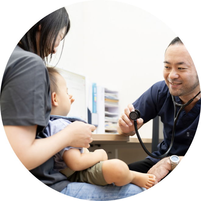NICU(新生児集中治療室)の卒業生を退院後もフォローした知見を生かし、産科退院後すぐの赤ちゃんから中学生までのお子様を、感染症・アレルギー・皮膚疾患・成長発達・予防接種・慢性疾患・など、横断的かつ連続的な診察を行います。 また一部の疾患(アレルギーや慢性疾患、心身症など)については、高校生以上も診察を継続します。